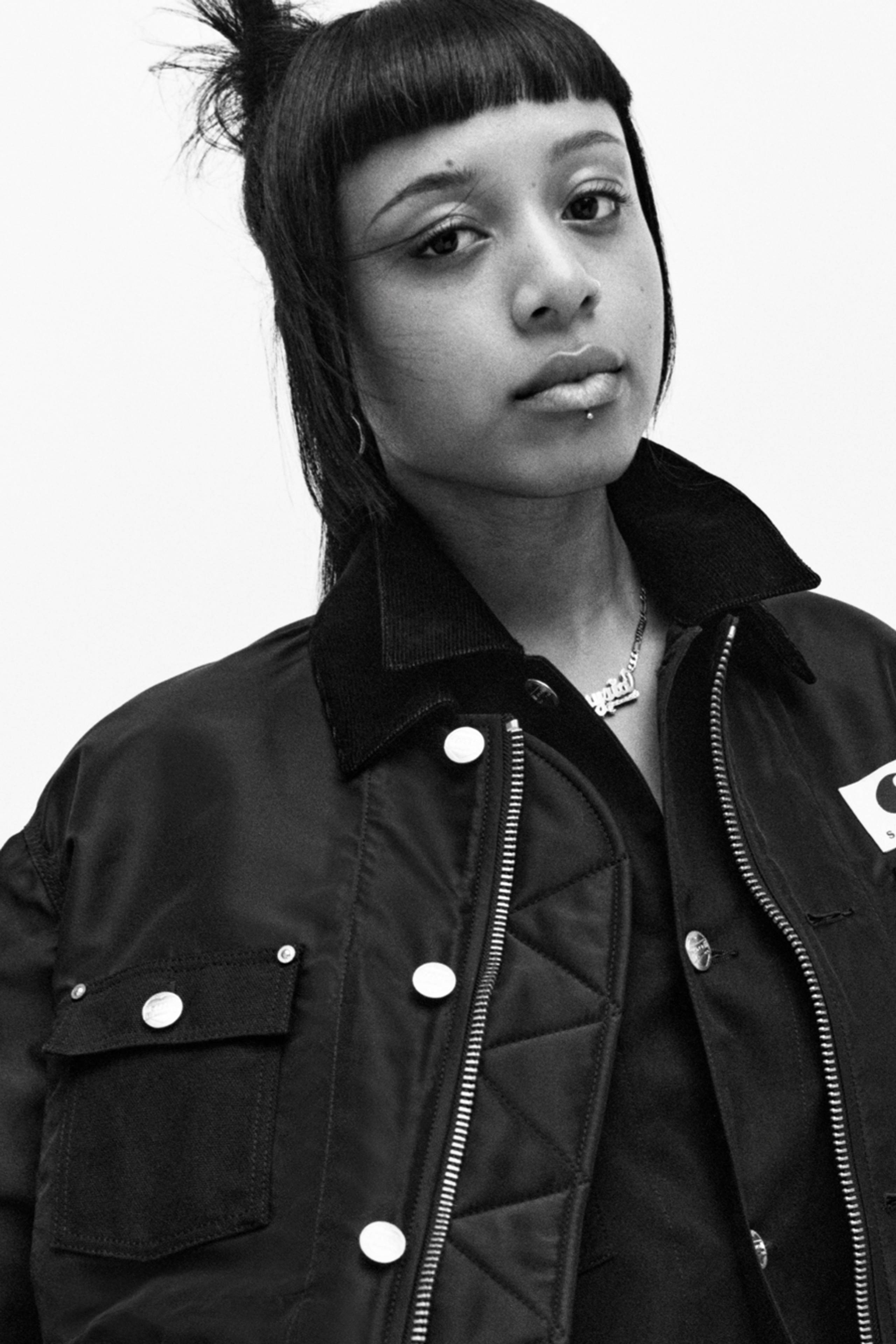 Through fabrics, fits, and details, each piece unites the distinct identities of both brands: sacai’s suiting fabric and nylon twill with Carhartt WIP’s robust duck canvas; subtle contrast stitching, tool pockets, and corduroy collars reflect Carhartt WIP’s utilitarian roots, while inventive deconstruction, hybrid layering, and sculptural proportions nod to sacai’s unique design language. The nine-piece collection brings together men’s and unisex styles, in black, blue, and ivory colorways.