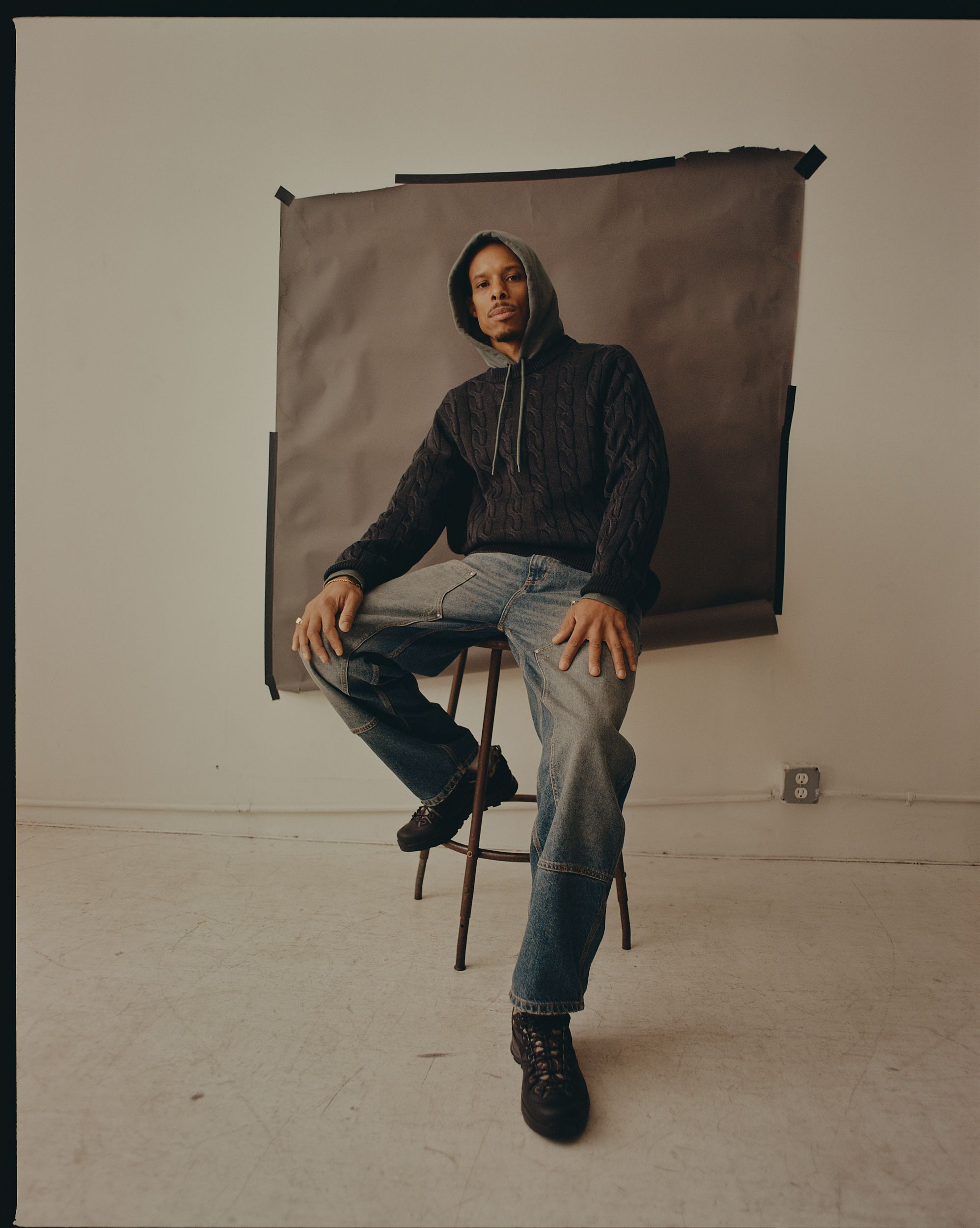 Our Brandon Pant has a loose straight fit with a dropped rise, starting baggy at the hip and maintaining a straight cut throughout the leg.