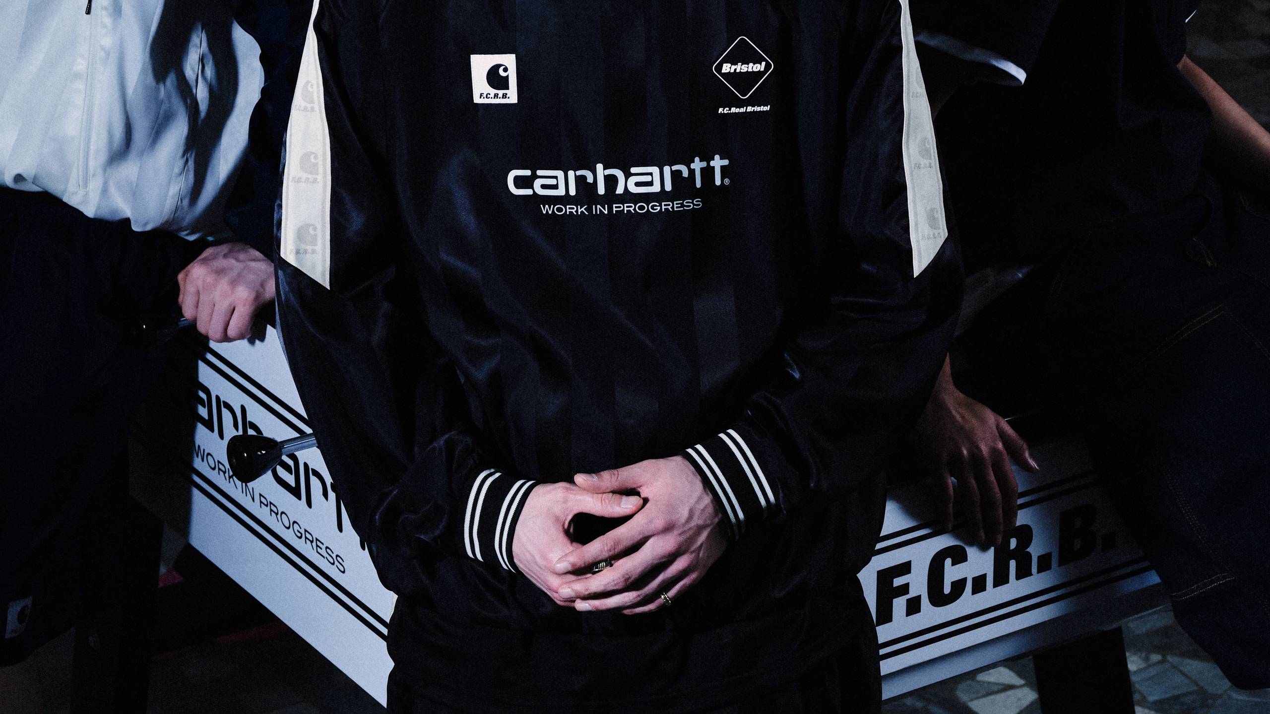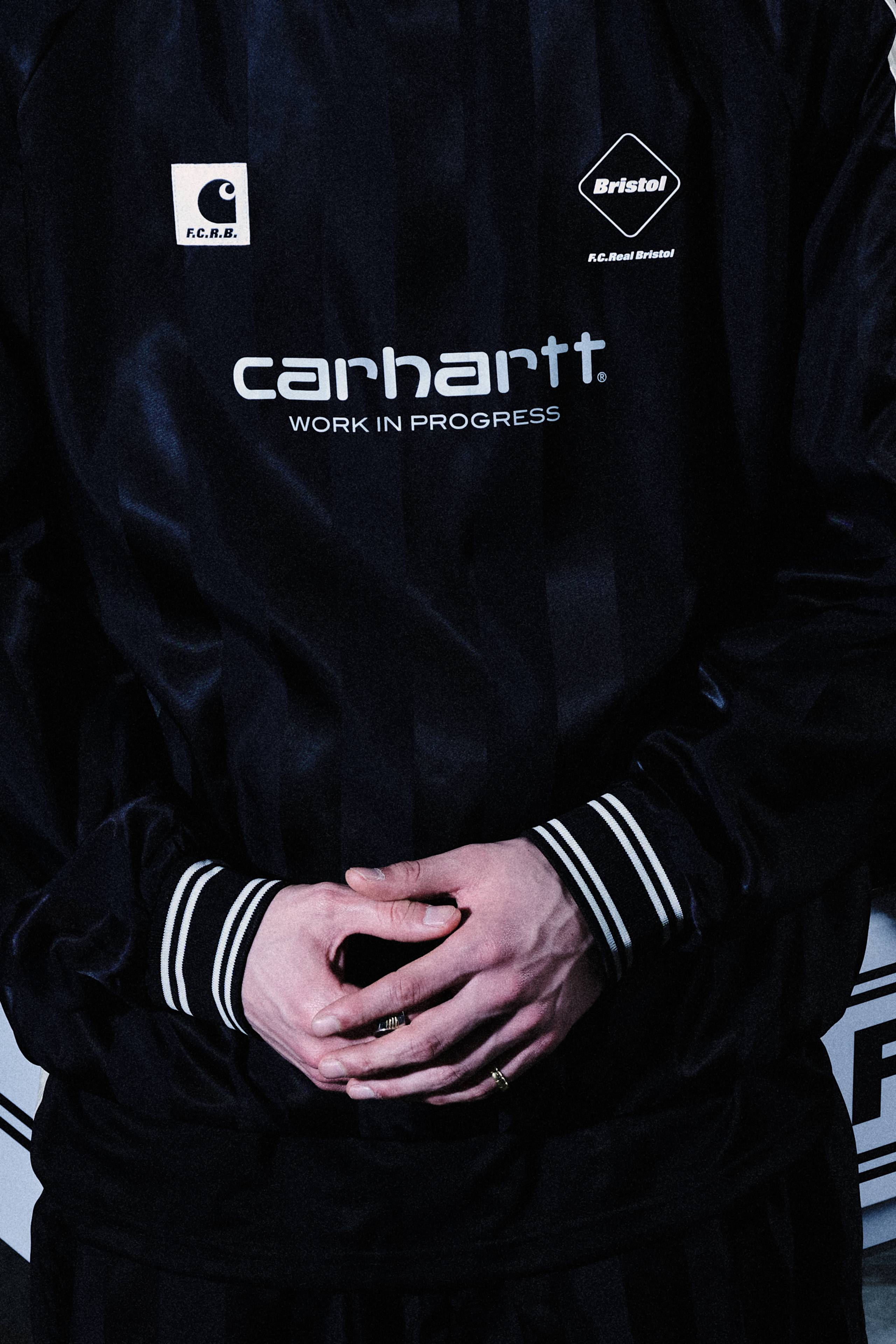 <p>Available in the U.S. and Canada Friday, April 10th at 10am EST / 7am PST. <br><br>Tokyo-based label F.C.Real Bristol and Carhartt WIP have collaborated on a capsule collection designed for wear on and off the pitch, based on the concept of a fictional football club. The Warm Up Piste is a long-sleeve style made from lightweight, mesh-lined nylon satin, featuring allover tonal shadow stripes. The training top has contrast-color sleeves – detailed with co-branded jacquard webbing at the shoulders – and contrasting ribbed trims. A Carhartt WIP Square Label, Script Logo and F.C.R.B branding appear on the front.