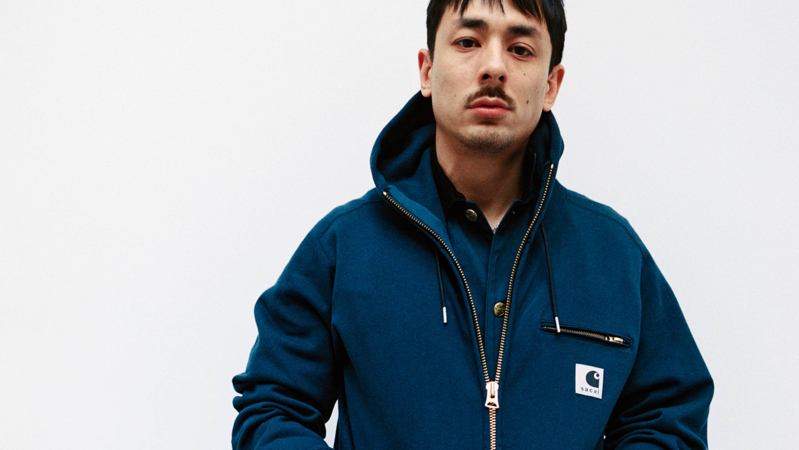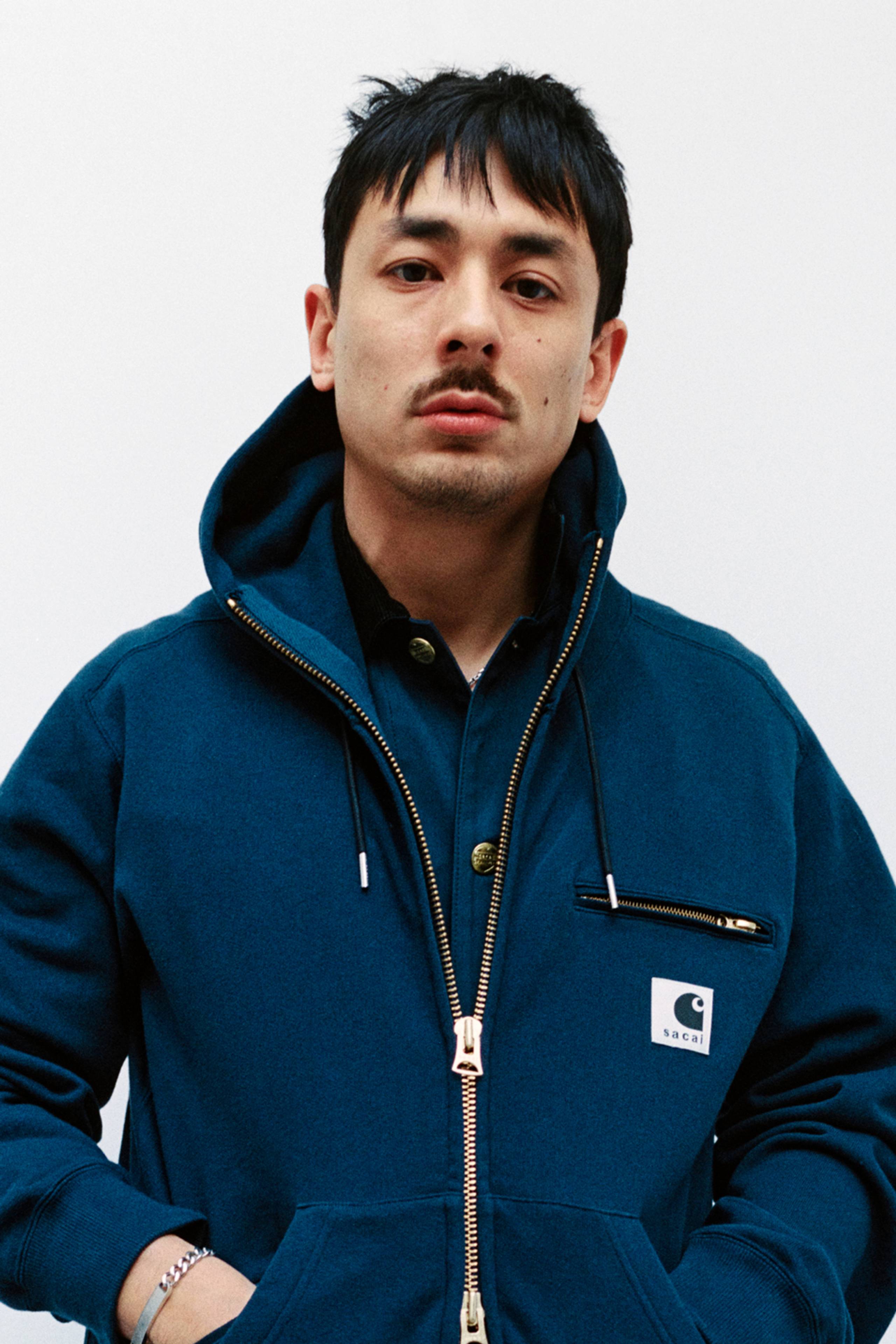 Available in North America Friday, February 6th at 10am EST / 7am PST. <br/> <br/> The sacai x Carhartt WIP Cotton Jersey Hoodie combines the silhouette of sacai’s hoodie with elements of Carhartt WIP’s Detroit Jacket. Made from heavyweight loopback cotton jersey with a soft brushed lining, the item features a zip front fastening, two front welt pockets, and a zipped chest pocket with Dearborn Canvas trims – referencing Carhartt WIP’s Detroit Jacket. An additional kangaroo pocket appears on the front. A co-branded woven label completes the design.