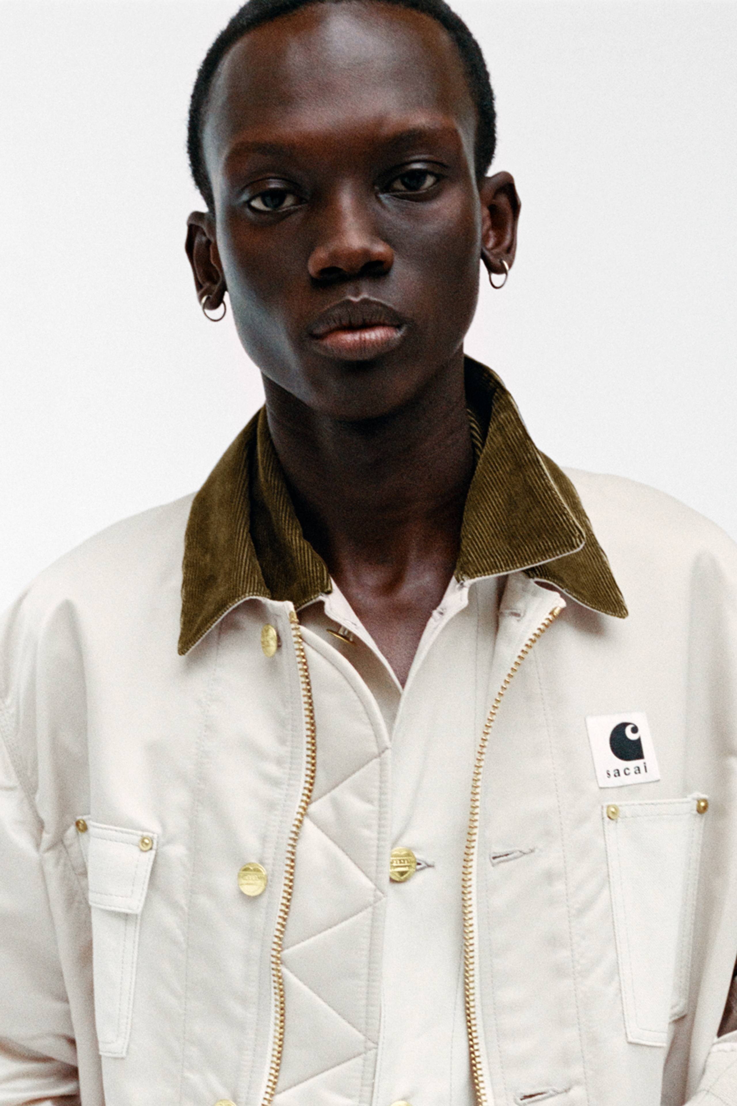 Available in North America Friday, February 6th at 10am EST / 7am PST. <br/> <br/> The sacai x Carhartt WIP Nylon Twill Duck Blouson combines the silhouette of sacai’s MA-1 blouson jacket with elements of Carhartt WIP’s Chore Coat. The item is made from sacai’s nylon twill fabric, and features four Dearborn Canvas pockets and a corduroy collar – taking cues from Carhartt WIP’s Chore Coat. The jacket is also detailed with pared-back, tonal stitching. The front features two closures: a button fastening referencing the Chore Coat, and a zip closure, which draws from sacai’s MA-1 blouson. A co-branded woven label completes the design.