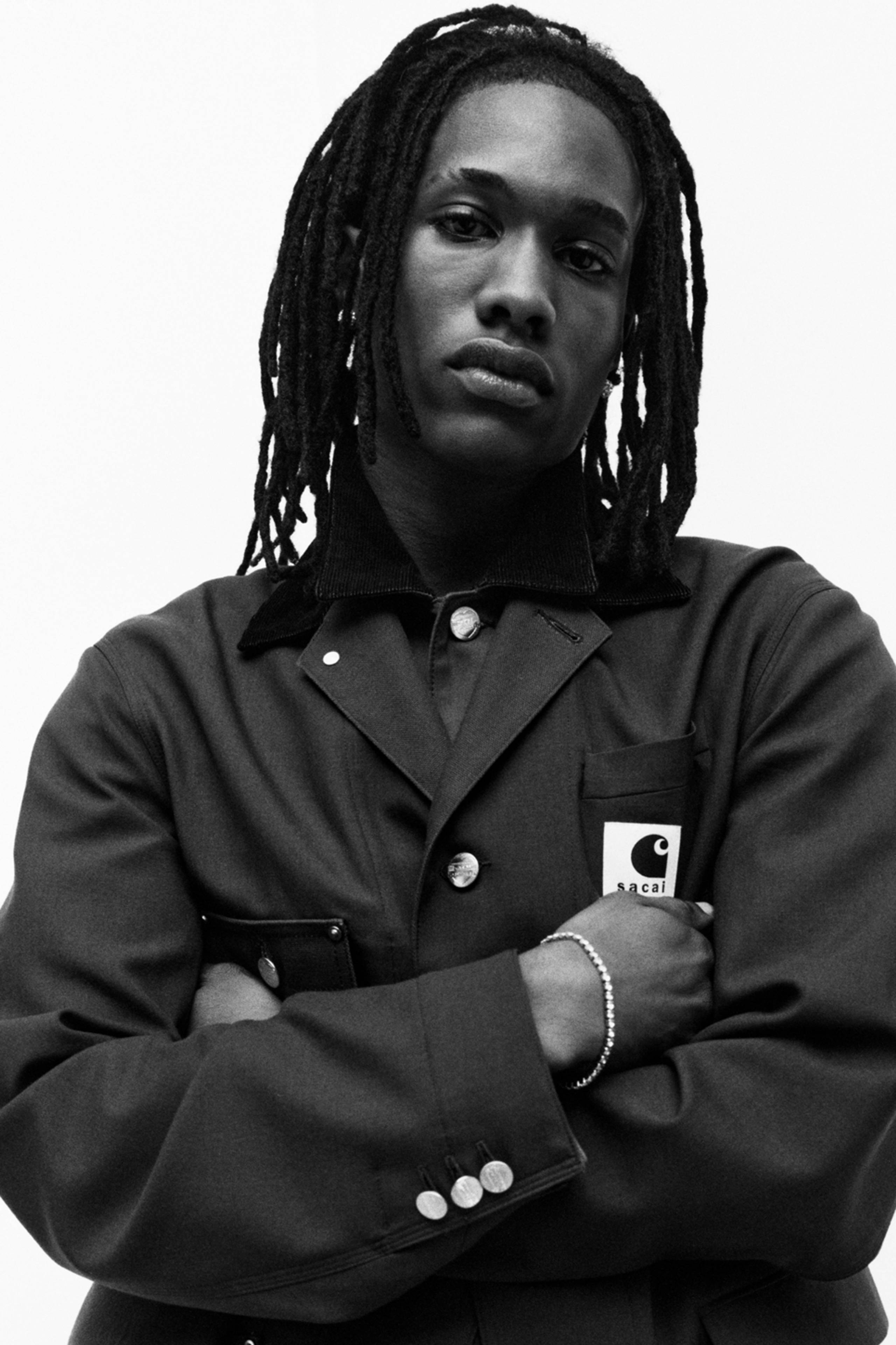 Available in North America Friday, February 6th at 10am EST / 7am PST. <br/> <br/> The sacai x Carhartt WIP Suiting Duck Jacket combines the silhouette of sacai’s single tailored jacket with elements of Carhartt WIP’s Siberian Parka and Chore Coat. The item is made from sacai’s wool-blend suiting fabric and features four Dearborn Canvas pockets, taking cues from Carhartt WIP’s Chore Coat. Meanwhile, the jacket’s lower two patch pockets reference Carhartt WIP’s Siberian Parka. An additional welt pocket appears on the chest. The jacket’s lapels can be fastened into a collar, and feature a mixture of corduroy fabric and Dearborn Canvas. A co-branded woven label completes the design.