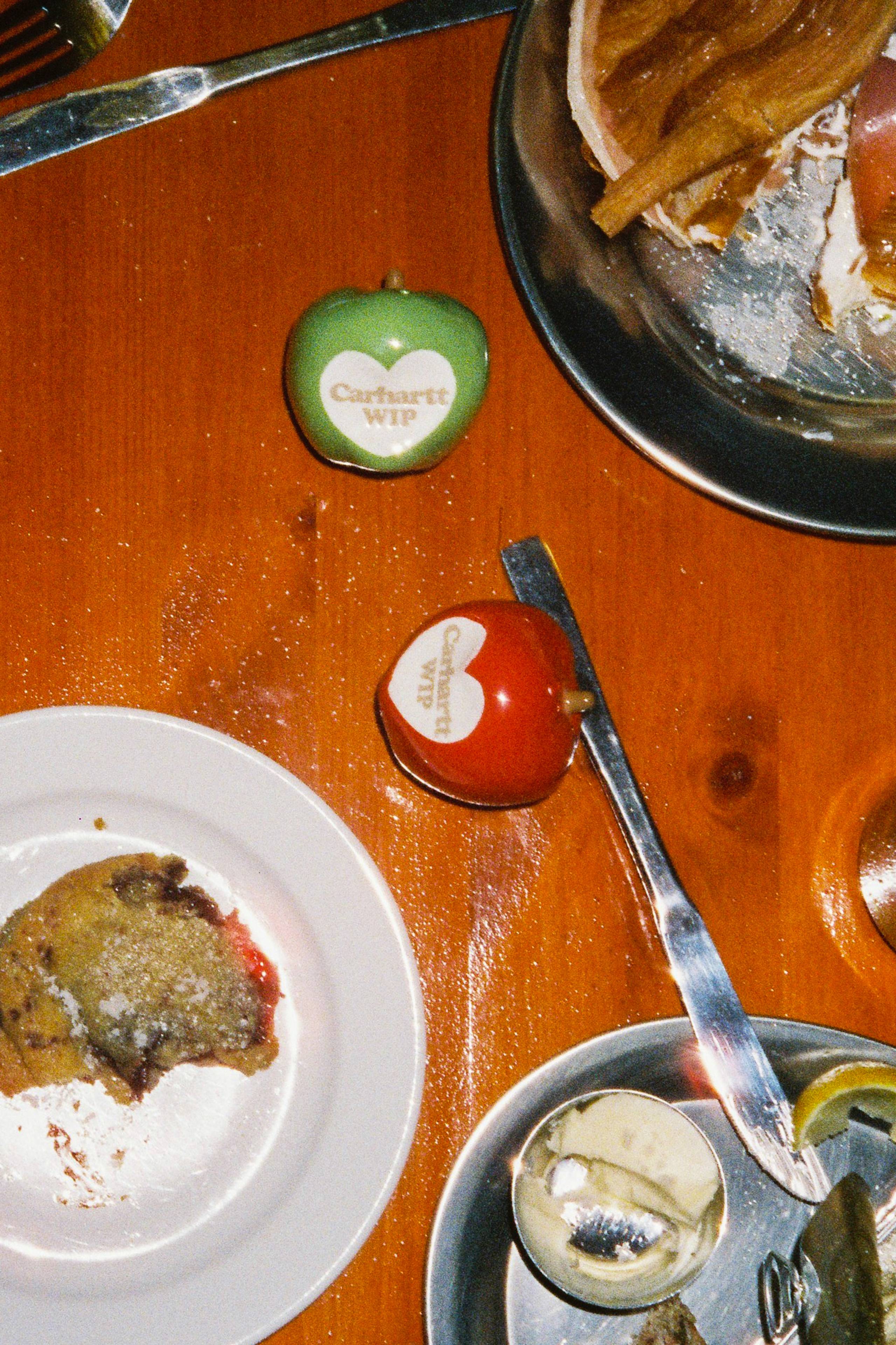 Part of S/S26’s latest delivery, the new Spoiled apple motif has been applied to a selection of tees, accessories, and rendered as a set of custom ceramic Salt and Pepper Shakers.